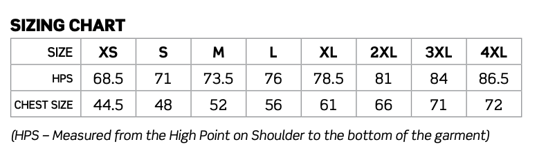 | Chest (cm) | 44.5 | 48 | 52 | 56 | 61 | 66 | 71 | 72 |